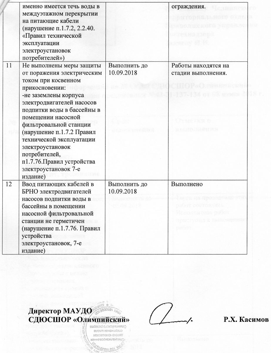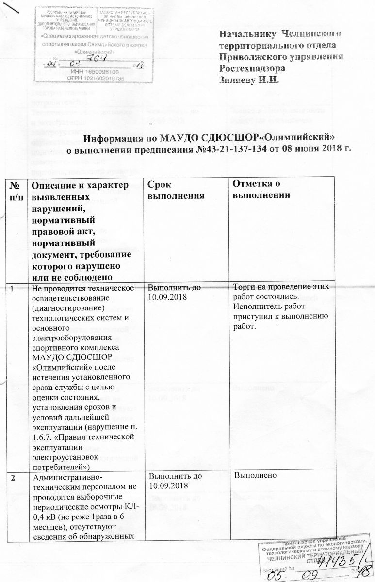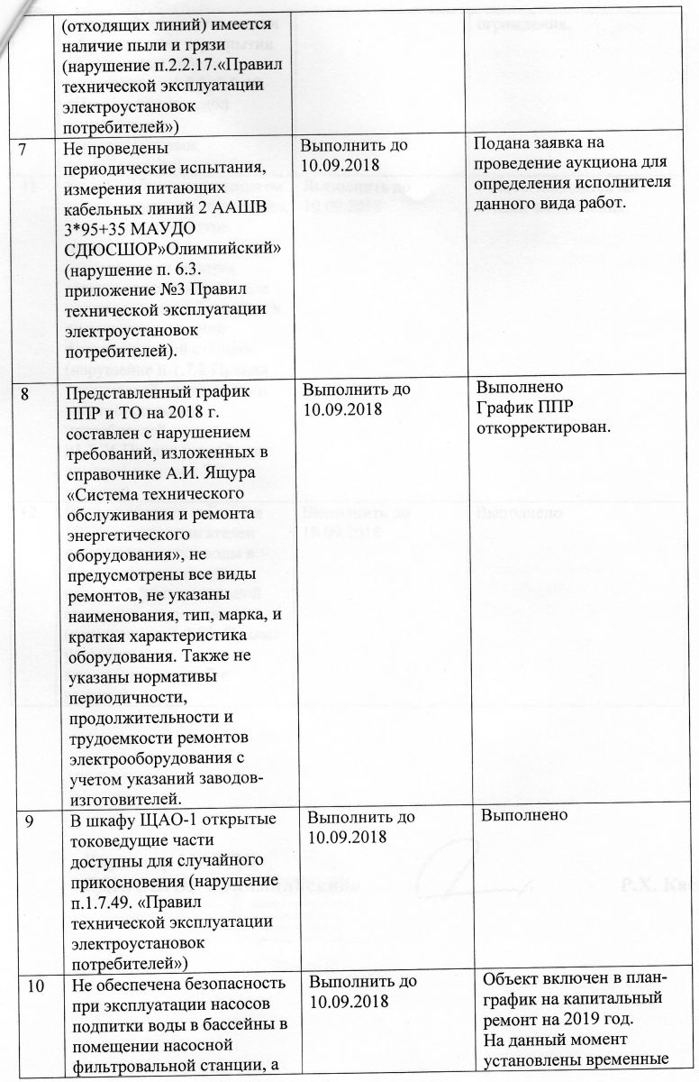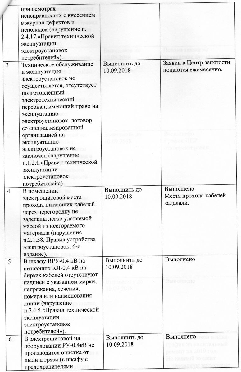 Отчет о выполнении предписания