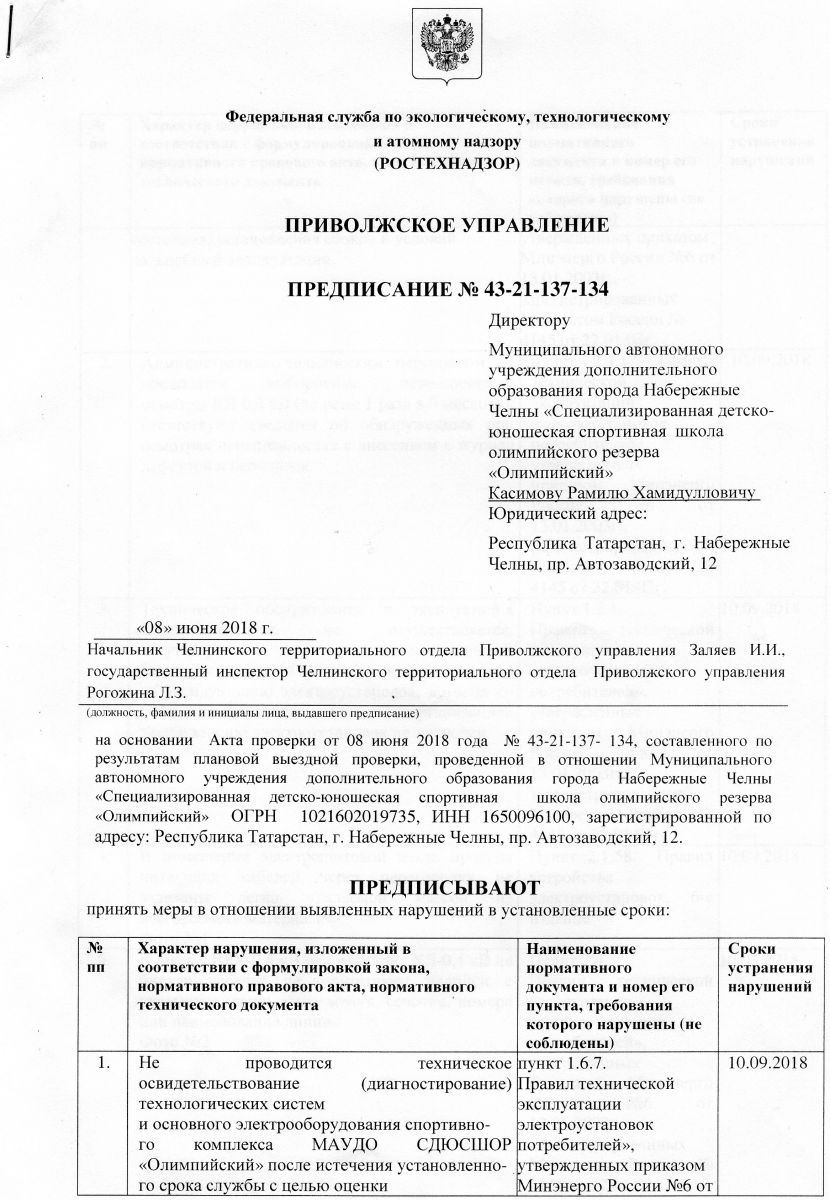 Предписание об устранении нарушений