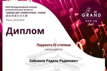 Наш юный пианист принял участие в XXXХ МЕЖДУНАРОДНОМ КОНКУРСЕ исполнительских искусств "GRAND ART COMPETITION — CHINA" 18.04.2025