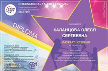 Олеся Каланцова - Лауреат I степени Международного конкурса "Star Fest". Молодец! 27.07.2020