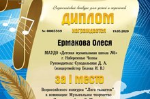 Ермакова Олеся Лауреат I степени Всероссийского конкурса! 28.05.2020