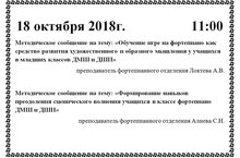 Методическое сообщение Локтевой А.В. на тему:"Обучение игре на фортепиано как средство развития художественного и образного мышления у учащихся в младших классах ДМШ и ДШИ" 18.10.2018