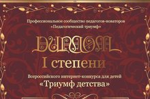 Победа во Всероссийском интернет-конкурсе для педагогов "Педагогический триумф" 08.08.2017