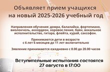 Детская музыкальная школа №2 объявляет дополнительный набор учащихся на новый 2025-2026 учебный год 11.08.2025