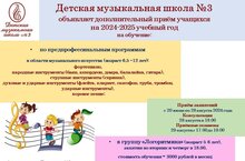 Детская музыкальная школа №3 объявляет о дополнительном наборе учащихся на 2024-2025 учебный год!