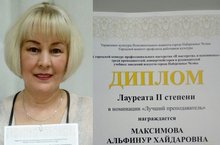 Сегодня в ДДН "Родник" прошла церемония награждения Городского конкурса профессионального мастерства "И мастерство, и вдохновение". Преподаватель нашей школы Максимова Альфинур Хайдаровна стала Лауреатом II степени в номинации "Лучший преподаватель"!