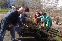 В рамках "Весенней недели добра" в школе проведена акция "Добрая земля". Сотрудники школы сажали кустарники на территории школы.