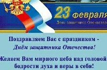 Уважаемые защитники Отечества! Поздравляем Вас с праздником!!! Желаем вам крепкого здоровья, счастья, успехов в делах и мирного неба над головой!!!