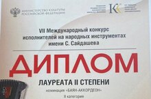 С 11 по 14 марта в г.Казань прошёл VII Международный конкурс исполнителей на народных инструментах имени Салиха Сайдашева. Учащийся ДМШ N°3 - Сафин Руслан (класс преподавателя Губеева Халильуллы Хамитовича) стал лауреатом II степени!