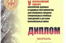 Победа во всероссийском конкурсе учащихся духового отделения 04.02.2014