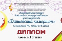 Поздравляем воспитанников Павлищевой Людмилы Юрьевны (концертмейстер Урукова Наталья Геннадьевна), Яковлевой Ирины Михайловны (иллюстратор Исламова Елена Валентиновна) с замечательным результатом в Республиканском конкурсе вокального и инструментального исполнительства "Алишевский камертон".