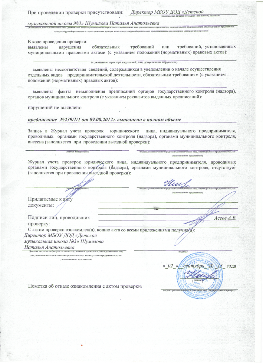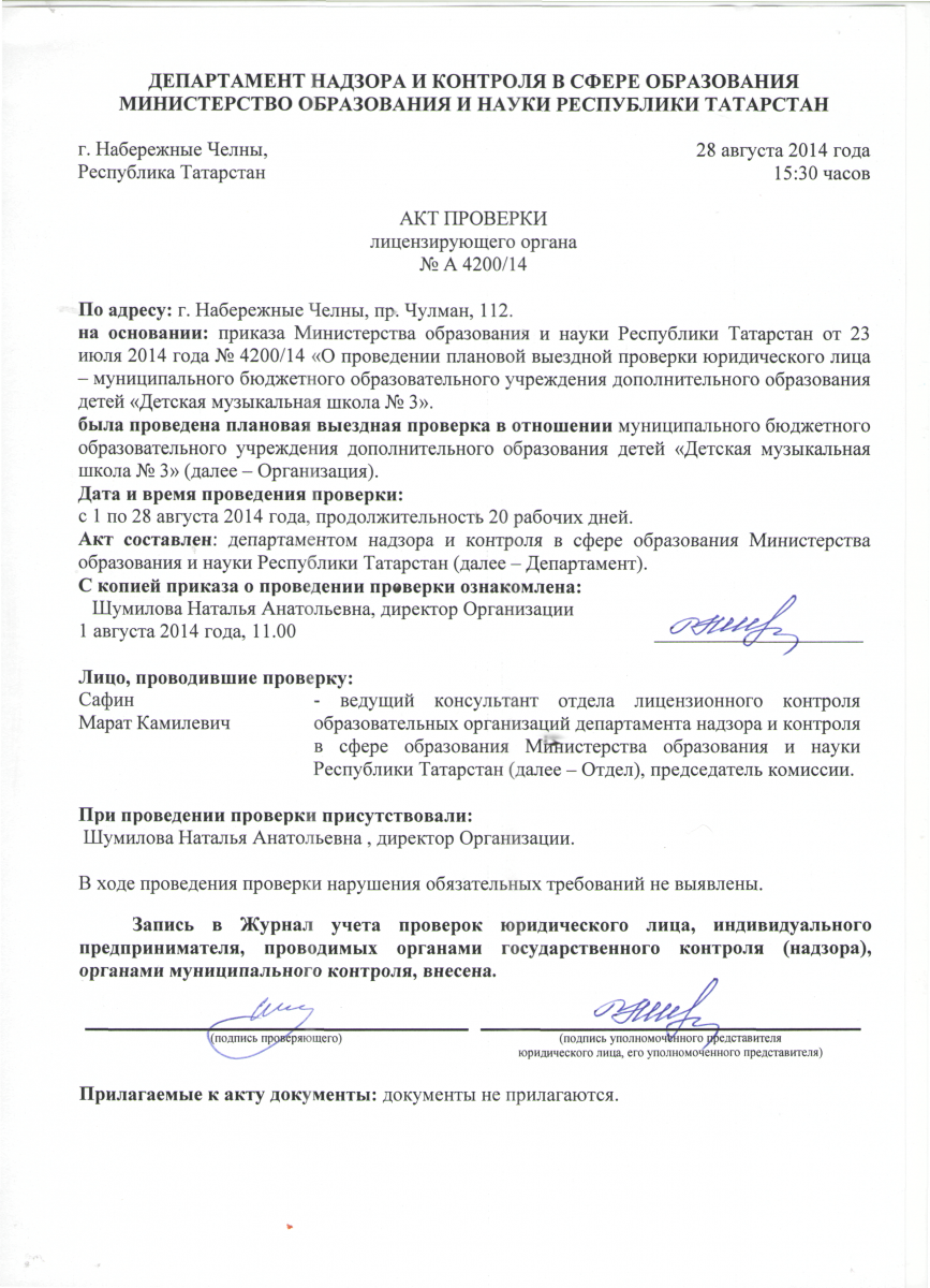 Акт проверки лицензирующего органа Департамента надзора и контроля в сфере образования МОиН РТ