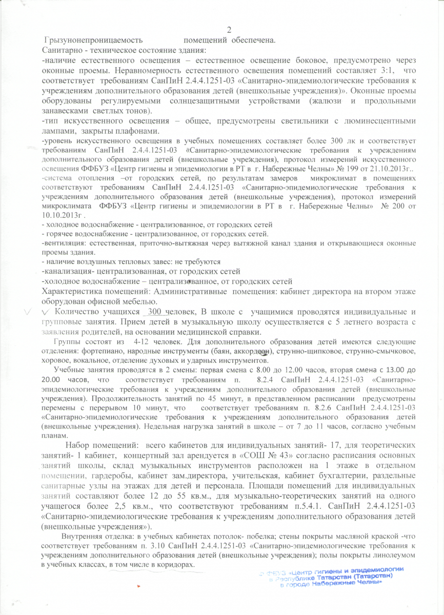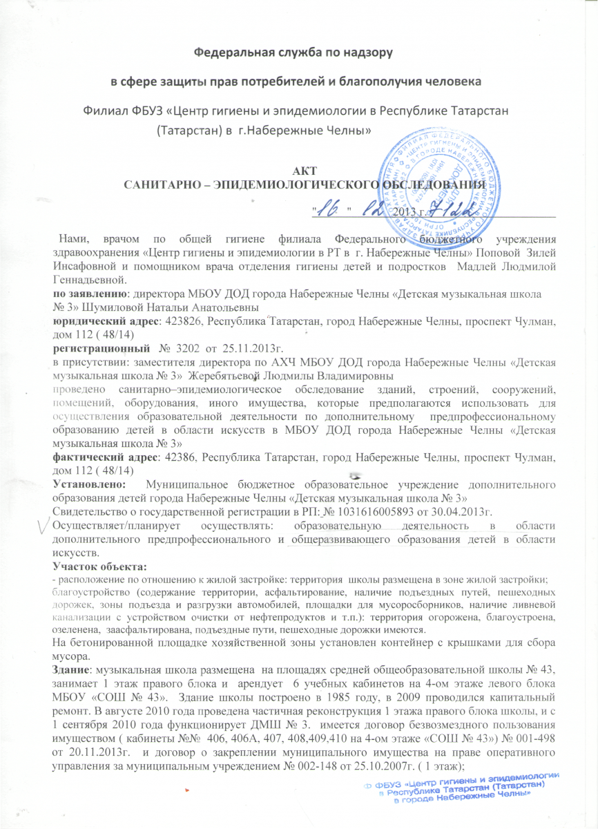 Акт санитарно-эпидемиологического обследования Федеральной службы по надзору в сфере защиты прав потребителей и благополучия человека (2стр.)