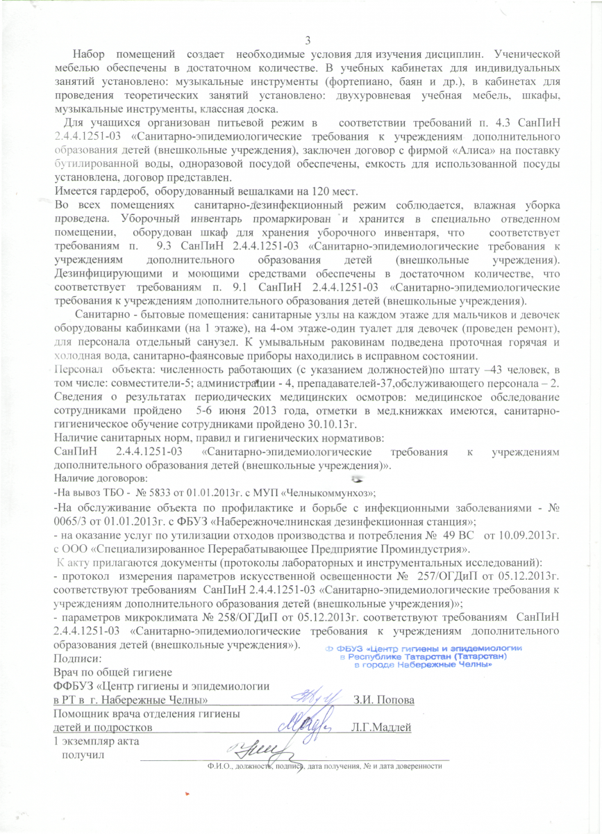 Акт санитарно-эпидемиологического обследования Федеральной службы по надзору в сфере защиты прав потребителей и благополучия человека (3 стр.)