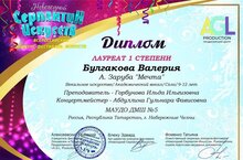 Поздравляем учащихся класса Горбуновой Ильды Ильгизовны, ставших лауреатами Всероссийского конкурса - фестиваля искусств "Новогодний серпантин искусств" (г. Севастополь)