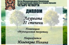 Международная олимпиада по музыкальной литературе "MUSICUS IUVENIS".Пятая Международная Олимпиада по музыкальной грамоте и теории музыки ЧЕТЫРЕ ЧЕТВЕРТИ. -