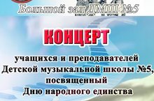 28 октября в Большом зале ДМШ №5 состоялся концерт "Мы вместе! Мы едины!", посвященный Дню народного единства.