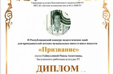 Преподаватели ДМШ № 6 - лауреаты I Республиканского конкурса педагогических идей для преподавателей детских музыкальных школ и школ искусств "Призвание", имени Гайнуллиной Раисы Ахметовны!