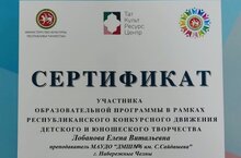 Сертификаты участников образовательного проекта Республиканского конкурсного движения детского и юношеского творчества «TaтARSтaн" получили участники ансамбля "Гармоника-квартет", руководитель Лобанова Е.В.