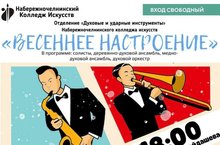 21 апреля в 18:00 в ДМШ №6 состоится концерт отделения "Духовые и ударные инструменты" Набережночелнинского колледжа искусств "Весеннее настроение".