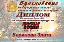 Учащиеся класса преподавателя Кокоревой Татьяны Алексеевны стали лауреатами Международного конкурса исполнительского мастерства "Вдохновение Весна - 2021"!