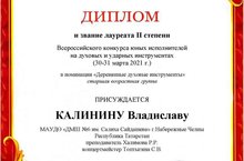 Калинин Владислав - лауреат Всероссийского конкурса юных исполнителей на духовых и ударных инструментах!