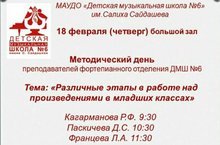 18 февраля в большом зале ДМШ6 состоялись методические чтения на фортепианном отделении школы.