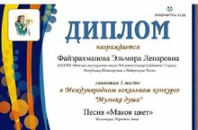 Файзрахманову Эльмиру поздравляем с победой в Международном вокальном конкурсе "Музыка души!
