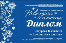 Всероссийский конкурс искусств "Новогодняя планета", г.Казань, 20.12.2020 г. Файзрахманова Эльмира - ЛАУРЕАТ 2 степени. Преподаватель - Гайсина Эльвина Альбертовна.