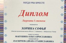 Международный конкурс-фестиваль в рамках проекта "Когда мы вместе" 13.12.2020г. Хорина Софья - ЛАУРЕАТ 1 СТЕПЕНИ.