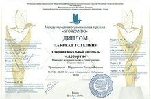 Международная музыкальная премия "Sforzando". Декабрь, г.Казань. Старший вокальный ансамбль "Ассорти" - дважды лауреаты I степени!