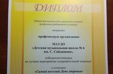 Поздравляем профсоюзную организацию ДМШ 6 им. С. Сайдашева с победой в конкурсе "Лучшее мероприятие оздоровительной тематики", номинация "Самый веселый День здоровья"! Ура! Молодцы!!!
