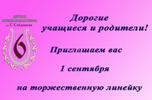 Приглашаем вас на торжественную линейку 1 сентября, посвящённая Дню знаний.