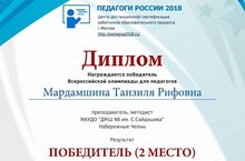 Победитель Всероссийской блиц-олимпиады "Педагоги России-2018" 22.04.2018