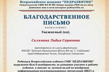 "Поздравляем Склямину Лидию Сергеевну с публикацией во Всероссийском издании СМИ "ПЕДРАЗВИТИЕ" 02.08.2017