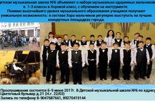Ведётся набор детей в хор мальчиков "ОРЛЯТА" 07.06.2017 Продолжается прослушивание детей в хор мальчиков ДМШ №6 им.С.Сайдашева.