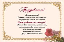 "ПОЗДРАВЛЯЕМ С ПРОФЕССИОНАЛЬНЫМ ПРАЗДНИКОМ - ДНЕМ РАБОТНИКА КУЛЬТУРЫ!" 25.03.2017
