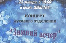 23 января 2017 г. в фойе ДМШ №6 состоится концерт духового отделения "ЗИМНИЙ ВЕЧЕР"