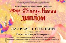 Поздравляем с победой Шафикову Диляру, класса преподавателя Зариповой Алюзы Зуфаровны!