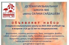ДЕТСКАЯ МУЗЫКАЛЬНАЯ ШКОЛА №6 имени САЛИХА САЙДАШЕВА объявляет набор учащихся в музыкальную школу на 2022-2023 учебный год