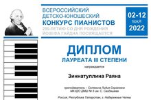 Зинатуллина Раяна - лауреат Всероссийского детско-юношеского конкурса пианистов, посвящённого 290-летию со дня рождения Йозефа Гайдна!