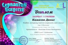 Камалов Данис - лауреат Всероссийского конкурса-фестиваля "Серпантин искусств"!