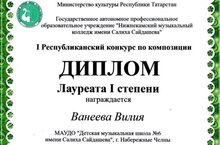 Ванеева Вилия - лауреат I Республиканского конкурса по композиции, ГАПОУ "Нижнекамский музыкальный колледж имени Салиха Сайдашева".