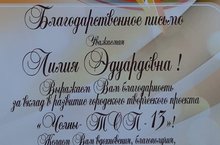 Благодарственное письмо за участие в проекте "Челны Топ - 13"