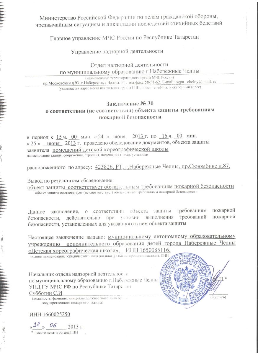 ЗАКЛЮЧЕНИЕ О СООТВЕТСТВИИ ТРЕБОВАНИЯМ ПОЖАРНОЙ БЕЗОПАСНОСТИ