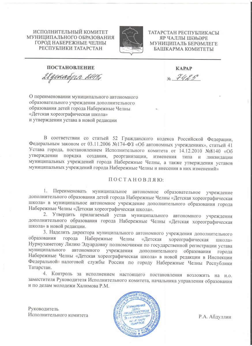 муниципальное автономное учреждение дополнительного образования города Набережные Челны "Детская хореографическая школа"