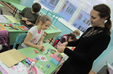 Сегодня на уроке ученики ДХШ № сотворили своими руками открытки ко Дню матери.