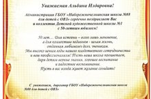 Администрация ГБОУ «Набережночелнинская школа №88 для детей с ОВЗ» сердечно поздравляет коллектив Детской художественной школы №1 с 50- летним юбилеем! 02.10.2023