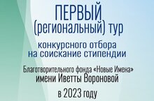 Приглашаем принять участие в Первом (региональном) туре конкурсного отбора на соискание стипендии Благотворительного фонда "Новые имена" имени Иветты Вороновой.