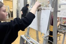 После теории ученики приступили к выполнению натюрморта. Ребята учились видеть тональные отношения, аккуратно наносить слои и передавать форму без использования цвета.